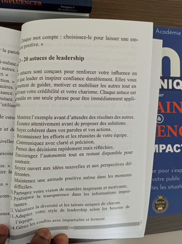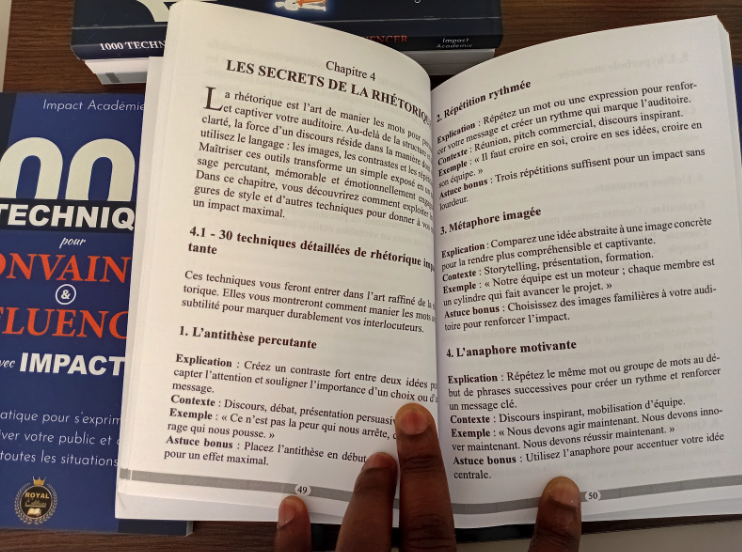 « 1000 techniques pour convaincre et influencer avec impact » est un véritable coach de poche, conçu pour vous accompagner pas à pas dans votre progression. En plus d’être un livre de développement personnel puissant, il est aussi un manuel pratique rempli de stratégies concrètes, d’exemples réels et d’astuces applicables immédiatement pour améliorer vos prises de parole.